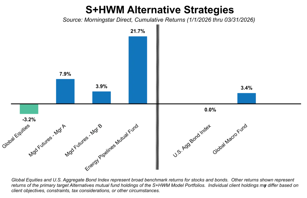 The first quarter of 2026 reminded investors, fairly abruptly, that markets never move in a straight line. Over the past three months, two forces stood out in driving portfolio outcomes: the escalation in geopolitical risk tied to the Iran conflict and the role of diversification beyond traditional U.S. assets.